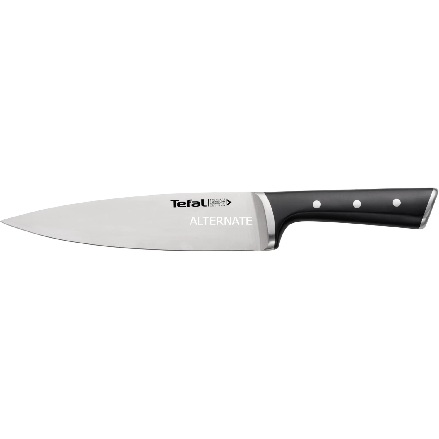 Das robuste, leistungsstarke Küchenmesser- Set der Ice- Force- Reihe von Tefal verbindet fortschrittliche Technologie und erstklassiges Design. Mit dem Holz-Messerblock sind die Ice Force Küchenmesser perfekt untergebracht, geschützt und stets griffbereit. Das erstklassige Küchenmesser- Sortiment überzeugt mit hoher Schnittqualität, konstanter Leistung und einem modernen Design. Das Ice- Force- Set umfasst ein Brotmesser 20cm, ein Kochmesser 20cm, ein Santokumesser 18cm mit Kullenschliff, ein Universalmesser 11cm und ein Schälmesser 9cm. Das Ice- Force-Sortiment lässt sich darüber hinaus mit einer Fleischgabel, einem Tranchiermesser 20cm, einem Set aus 4 Steak- Messern und einem Schälmesser mit geschwungener Klinge 7cm bei Bedarf erweitern. Das hochwertige Messer-Set von Tefal bringt höchste Qualität und ein modernes Design in die Küche.