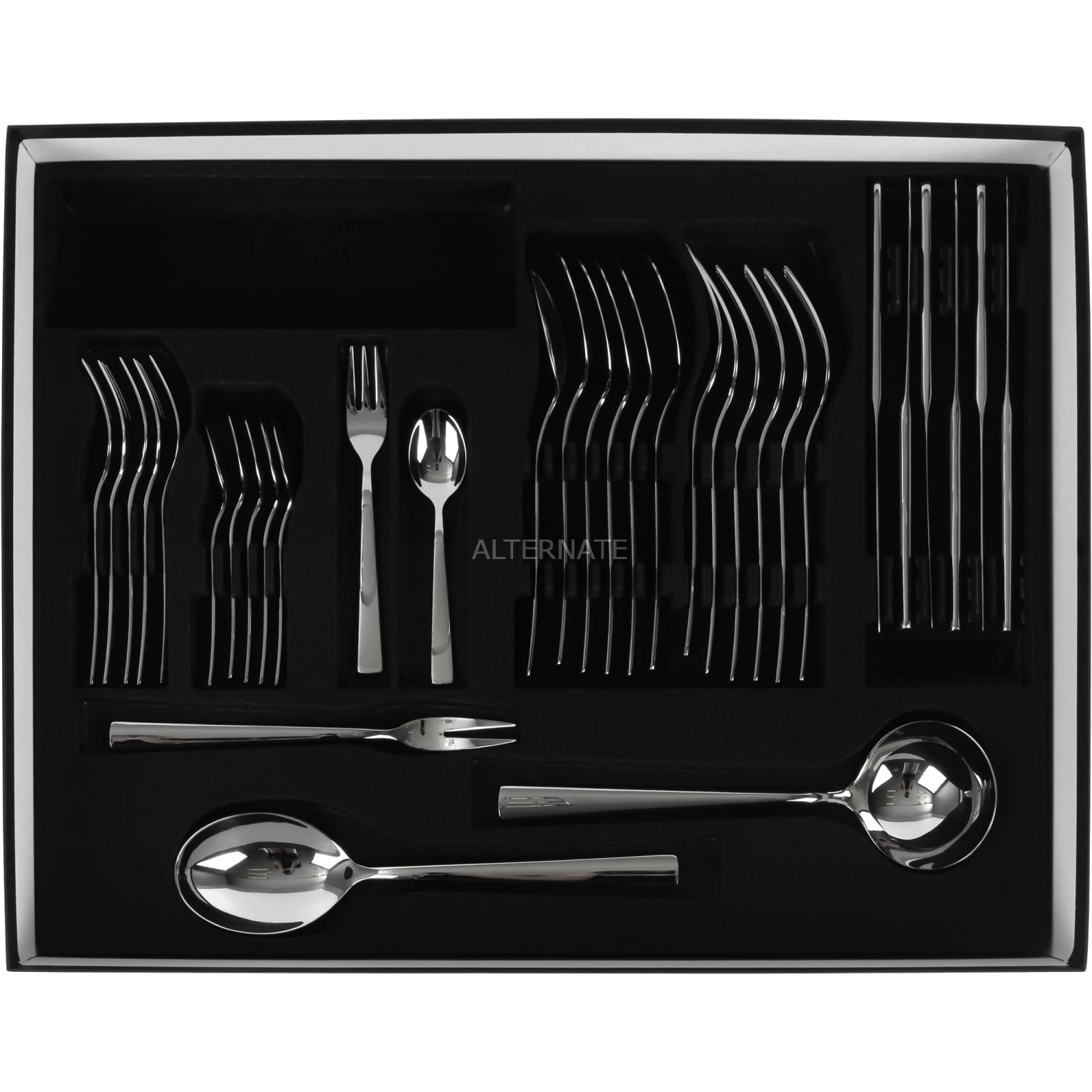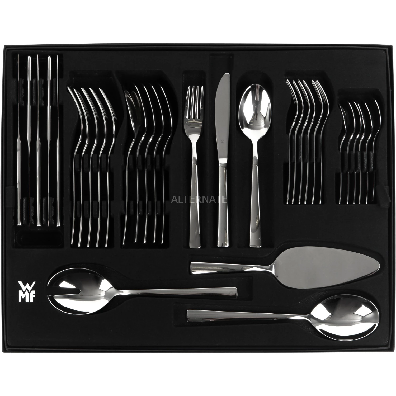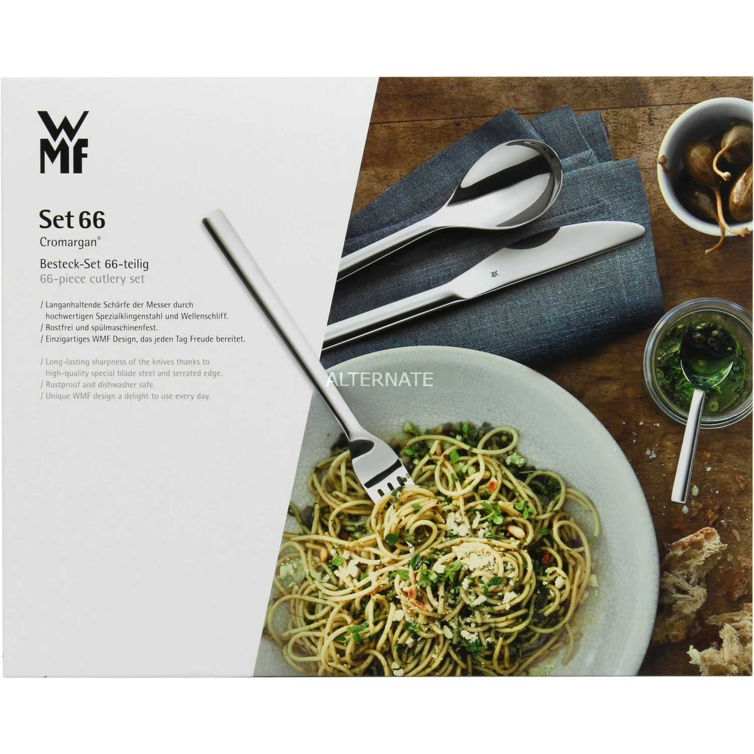 Das 66-teilige WMF Besteck-Set Philadelphia ist für zwölf Personen ausgelegt und bietet passend zu zahlreichen Speisen und Gängen je zwölf Menügabeln, -messer und -löffel sowie Kuchengabeln und Kaffeelöffel. Die 66 Teile sind aus pflegeleichtem Cromargan Edelstahl Rostfrei 18/10 gefertigt. Sie bilden eine gute Basis für tägliches Speisen und können mit weiteren Servier- und Ergänzungsbestecken vervollständigt werden, für eine vollendete Tischkultur. Ob im Alltag in modernem Ambiente oder zu traditionellem Porzellan, das WMF Besteck Philadelphia passt immer. Es ist ein Besteck von zeitloser Schönheit und gefällt durch seine Einfachheit und die unaufdringliche Eleganz. Je mehr Beachtung man dem Besteck schenkt umso anziehender wird es. Philadelphia ist nicht langweilig es erschließt sich nach und nach. Die schlanke Form ist konsequent durchgestaltet bis in die Messerklinge. Trotz dieser Schlankheit liegt Philadelphia angenehm weich in der Hand.