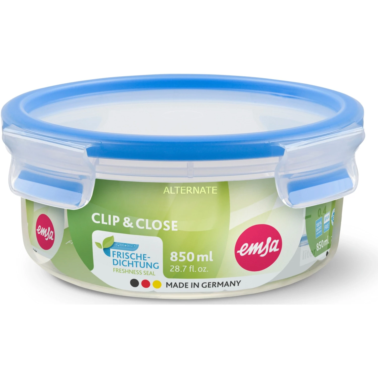 Neu 🌟 Frischhaltedosen Emsa CLIP & CLOSE Frischhaltedose 0,85 Liter (transparent/blau, Rund, Ø 16,7cm) 🔥