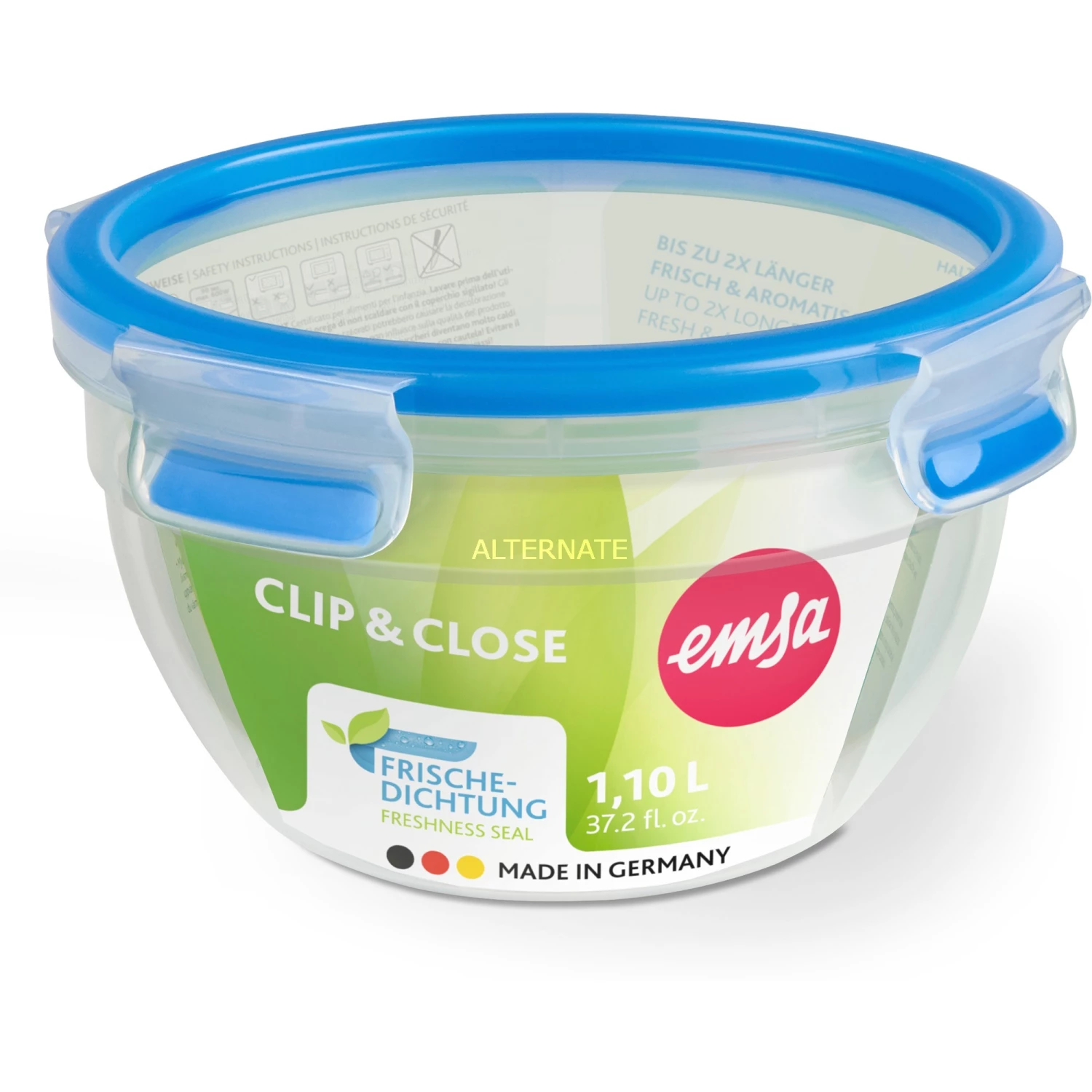 Rabatt 🎉 Frischhaltedosen Emsa CLIP & CLOSE Frischhaltedose 1,1 Liter (transparent/blau, Rund, Ø 16,7cm) 👍