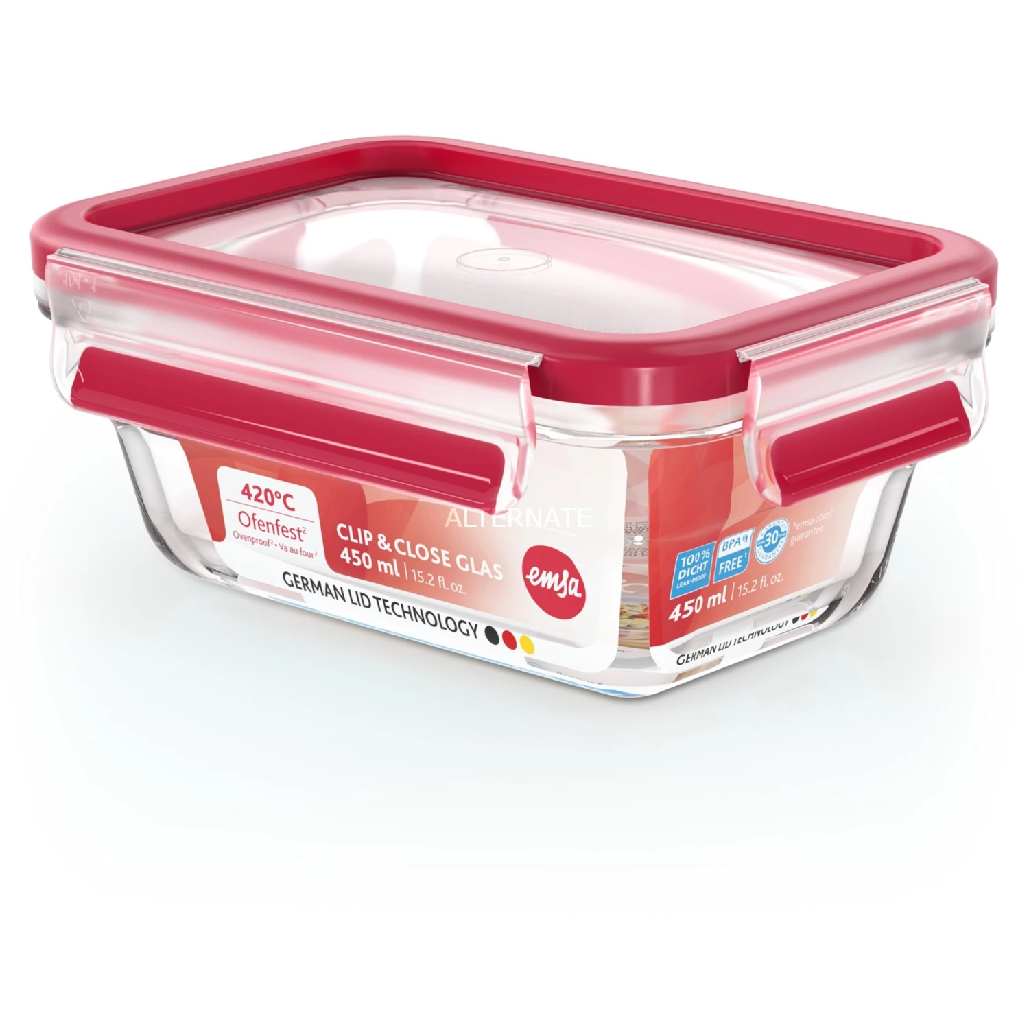 Aktion 😍 Frischhaltedosen Emsa CLIP & CLOSE Glas-Frischhaltedose 0,45 Liter (transparent/rot, Rechteckig) 😉