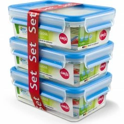 Angebote ✨ Emsa CLIP & CLOSE Frischhaltedosen 1,0 Liter (transparent/blau, Rechteckig, 3 Stück) 😍