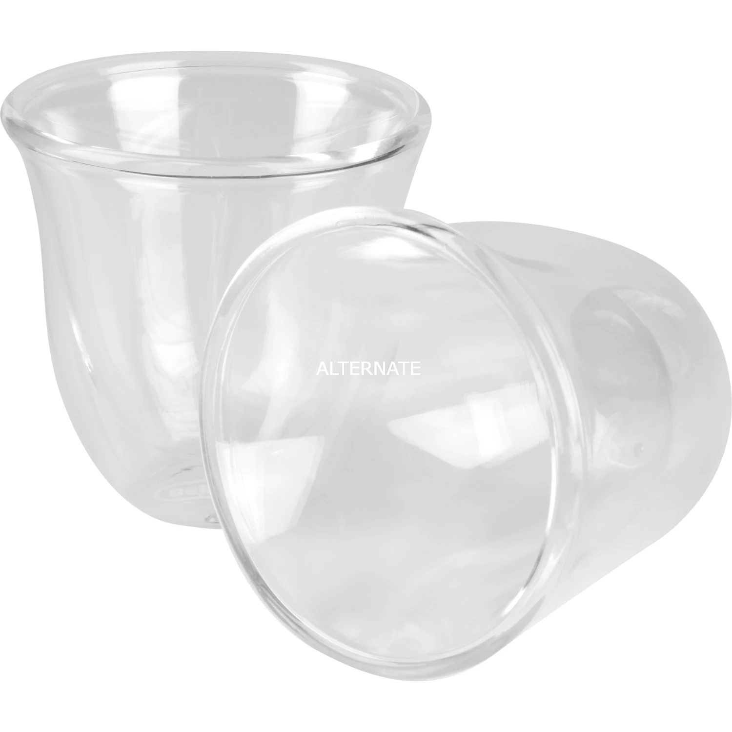 Die DeLonghi Espresso-GlĂ€ser im 2er-Set sind doppelwandige Thermo-GlĂ€ser, die GetrĂ€nke warm oder kalt halten – ohne Kondensation an der AuĂenseite. Dank ihrer mundgeblasenen Form sind sie bequem festzuhalten. Die Espresso-GlĂ€ser sind hitzebestĂ€ndig und damit spĂŒlmaschinenfest.