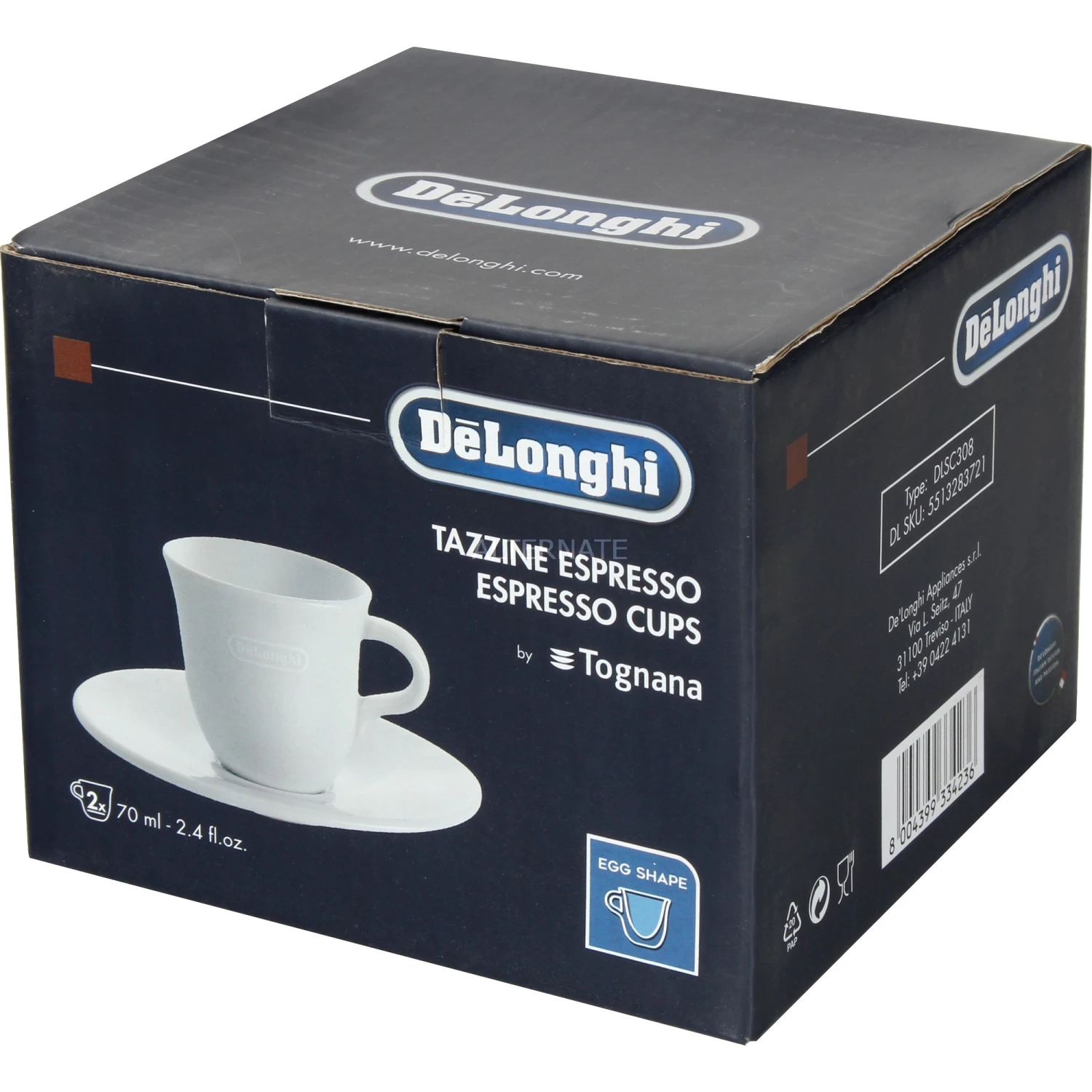 Die DeLonghi Cappuccino-Tassen im 2er-Set sind aus weißem Porzellan handgemacht. Designt von De’Longhi und produziert von Tognana, macht diese eierförmige Tasse jeden Espresso zum Genuss. Das hochwertige Set mit passenden Untertassen ist mikrowellen- und spülmaschinenfest.